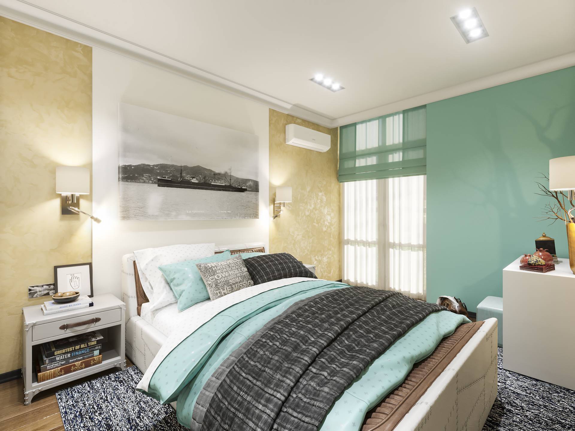 Такие интерьеры, а именно интерьеры с большой цветовой палитрой наиболее сложно выполнимы, но в тоже время интересны. Очень просто выполнить интерьер в 2 цветах, но намного сложнее используя 5 цветов сделать завершенную композицию, без доминанты одного цвета над другим.